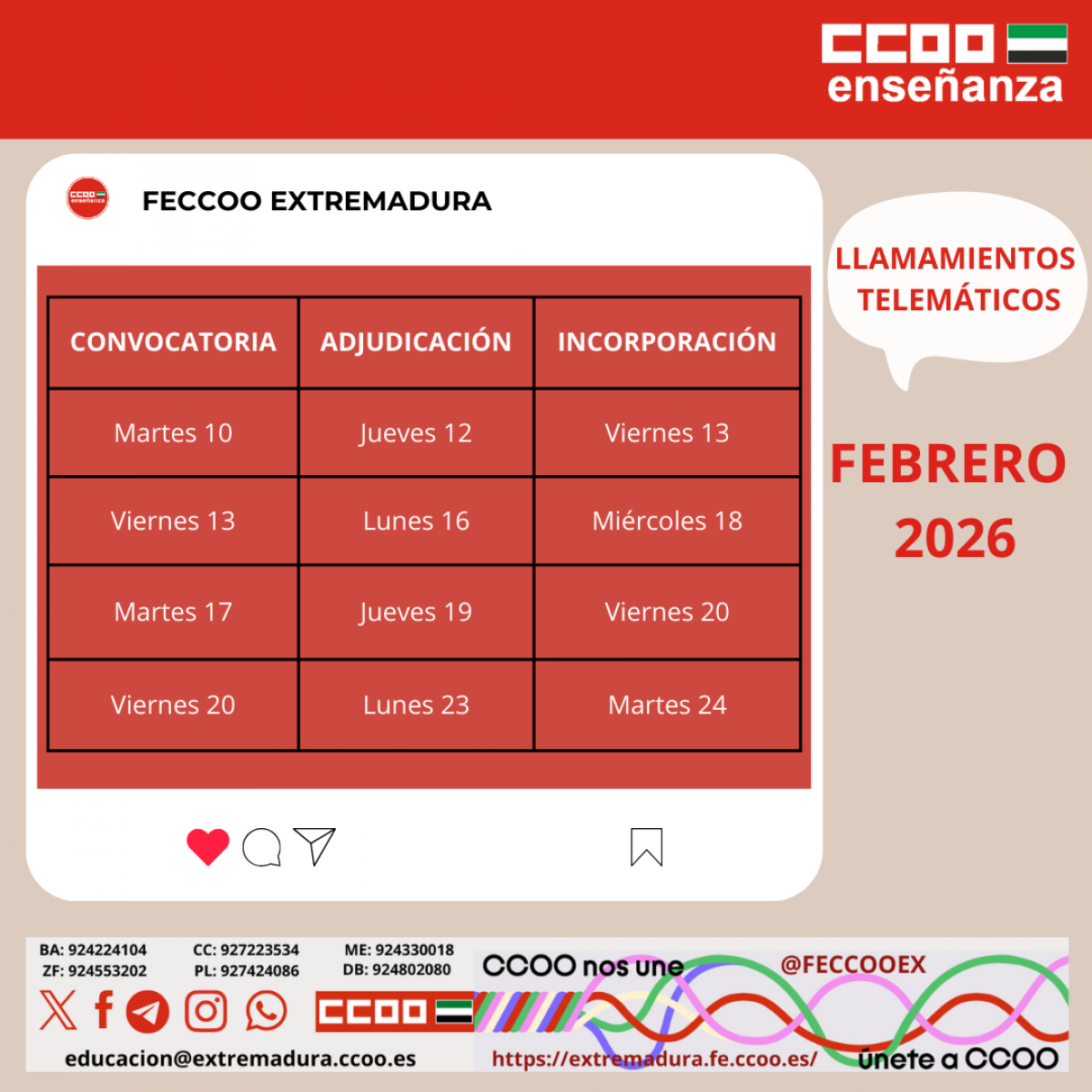 Federación de Enseñanza de CCOO de Extremadura | 11 febrero 2026.